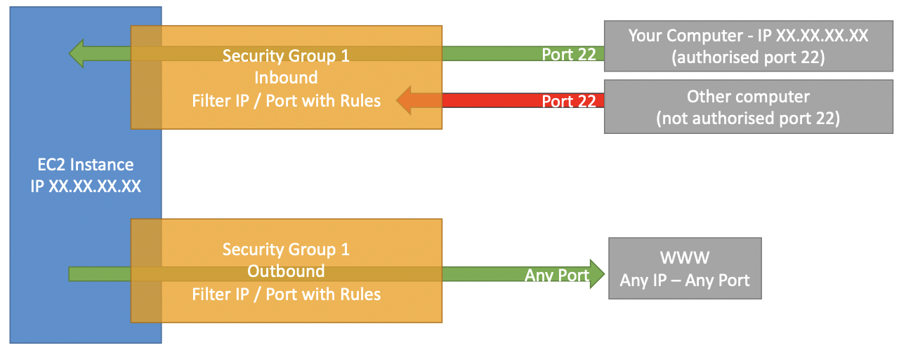 - 하나의 인스턴스에 여러 보안 그룹이 있을 수 있음.