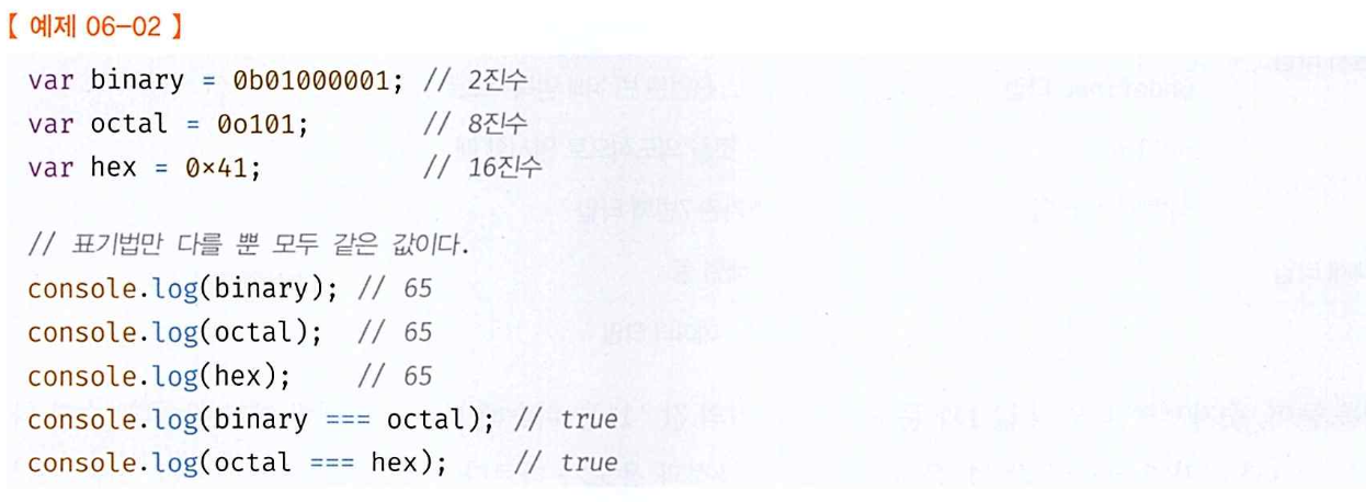 또한, 2진수, 8진수, 16진수를 표현하기 위한 데이터 타입을 제공하지 않아 이들 값을 참조하면 모두 10진수로 해석된다.