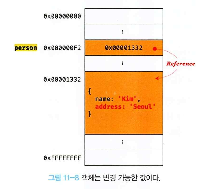 객체(참조) 타입의 값, 즉 객체는 변경 가능한 값이다.