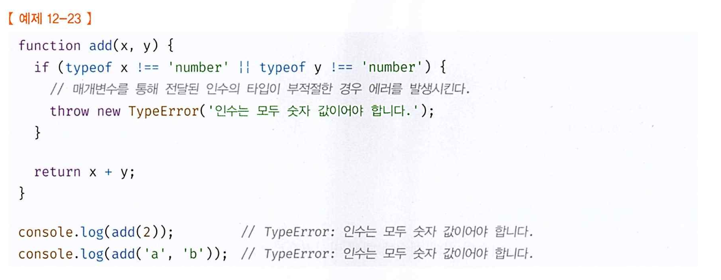 따라서 자바스크립트의 경우 함수를 정의할 때 적절한 인수가 전달되었는지 확인할 필요가 있다.