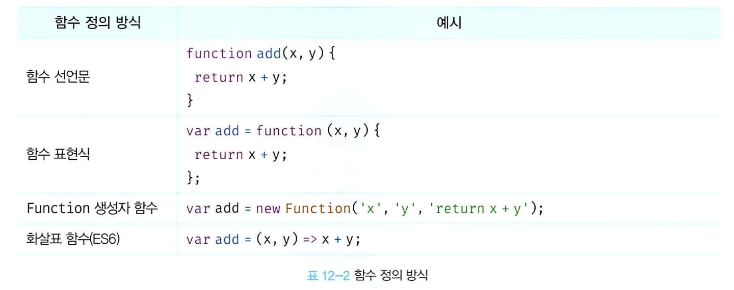 함수 리터럴은 function 키워드, 함수이름, 매개 변수목록, 함수 몸체로 구성된다.