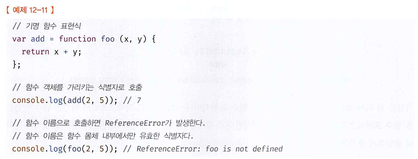 또한, 이름이 있는 기명 함수 리터럴은 코드의 문맥에 따라 함수 선언문 또는 함수 리터럴 표현식으로 해석 된다. (따라서 주의해야함)