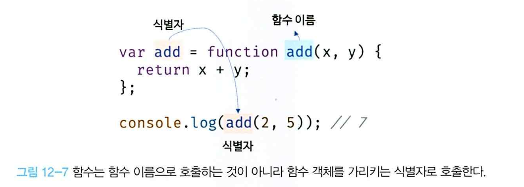 함수는 함수 이름으로 호출하는 것이 아니라 함수 객쳬를 가리키는 식별자로 호출한다.