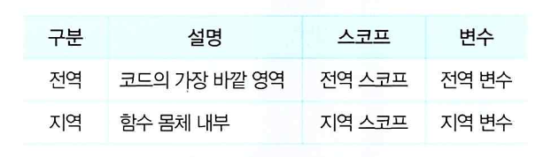 전역 - 코드의 가장 바깥 영역 (전역 스코프, 전역 변수를 만듦 -> 어디서든 참조 가능)