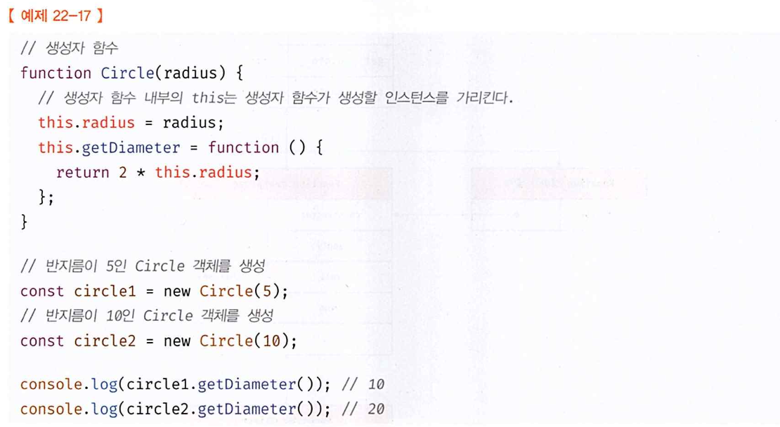 생성자 함수 내부의 this에는 생성자 함수가 (미래에) 생성할 인스턴스가 바인딩된다.