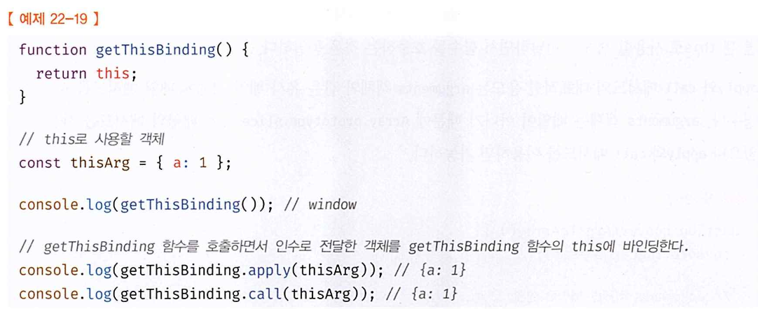apply, call 메서드는 this로 사용할 객체와 인수 리스트를 인수로 전달받아 함수로 호출한다.