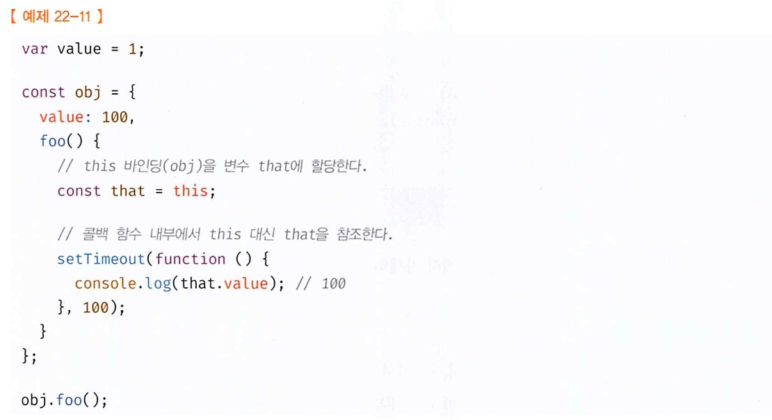 메서드 내부의 중첩 함수나 콜백 함수의 this 바인딩을 메서드의 this 바인딩과 일치시키기 위한 방법은 다음과 같다.