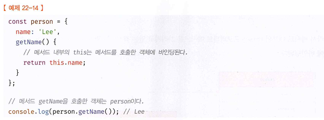 이때 메서드가 자신이 속한 객체의 프로퍼티를 참조하려면 먼저 자신이 속한 객체를 가리키는 식별자를 참조할 수 있어야 한다.