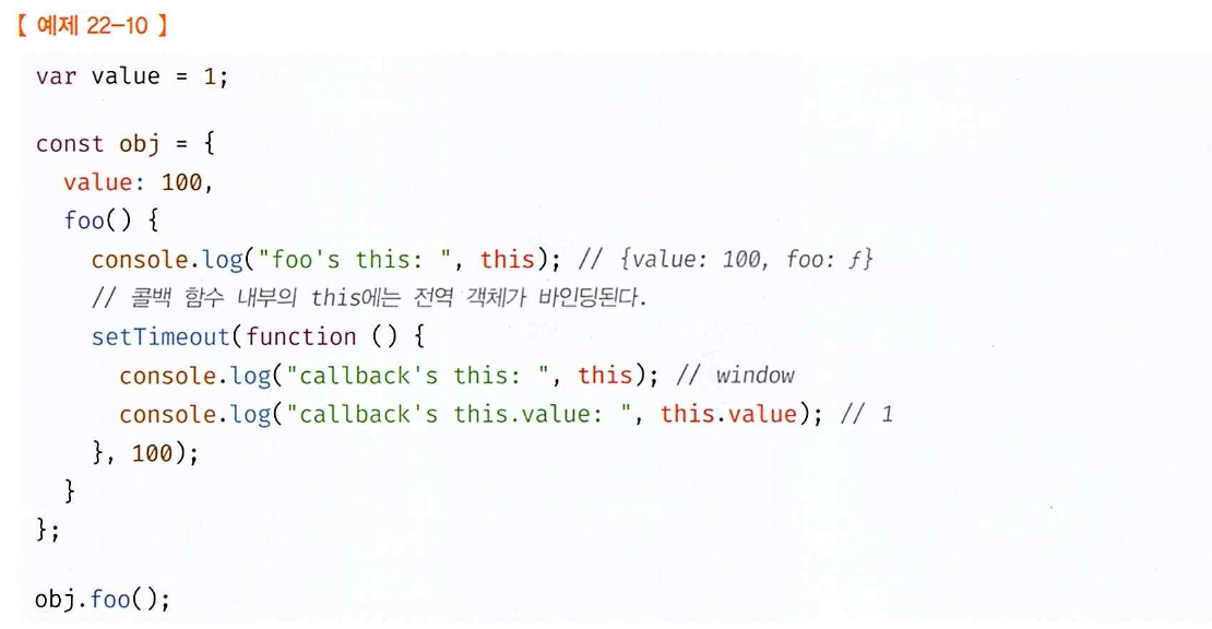 따라서 this.value는 obj객체의 value 프로퍼티가 아닌 전역 객체의 value 프로퍼티, 즉 window.value를 참조(=1)한다.