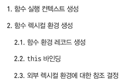 이때 자신의 내부 슬롯 [[Environment]]에 저장된 상위 스코프의 참조는 현재 실행 중인 실행 컨텍스트의 렉시컬 환경을 가리킨다. (왜냐하면 해당 함수가 정의된 시점은 상위 함수가 평가 또는 실행되고 있는 시점이기 때문에)