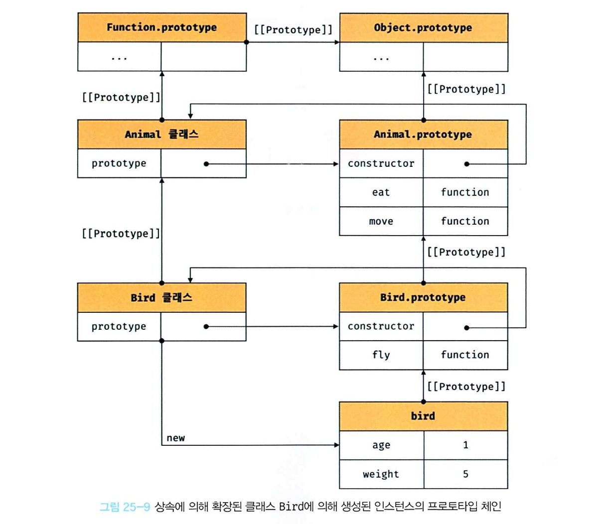 상속에 의해 확장된 클래스 Bird를 통해 생성된 인스턴스의 프로토타입 체인은 다음과 같다.