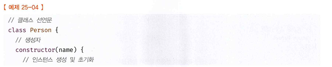 constructor의내부코드가실행되어this에바인딩되어있는인스턴스를초기화한다. 즉, this에 바인딩되어 있는 인스턴스에 프로퍼티를 추가하고 constructor가 인수로 전달받은 초기값으로 인스턴스의 프로퍼티 값을 초기화한다. 만약 constructor가 생략되었다면 이 과정도 생략된다.