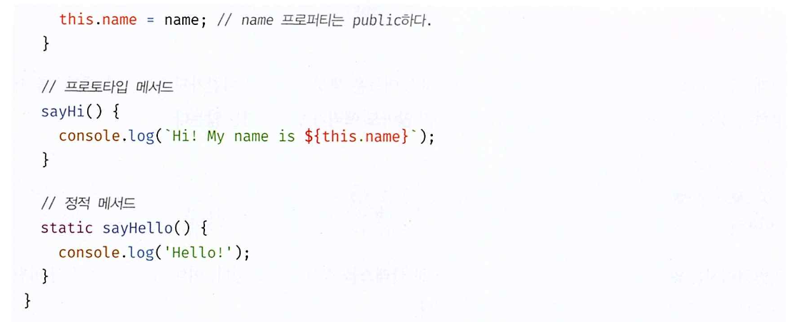 클래스 몸체에서 정의할 수 있는 메서드는 constructor(생성자), 프로토타입 메서드, 정적 메서드 세가지가 있다.