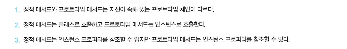 만약 인스턴스 프로퍼티를 참조(this 사용)해야 한다면 정적 메서드 대신 프로토타입 메서드를 사용해야 한다.